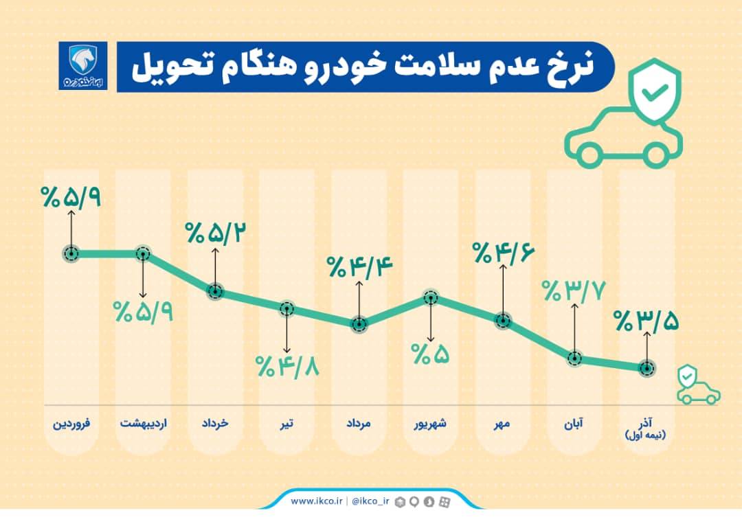 بر همین اساس، نتایج اندازه گیری شرکت بازرسی کیفیت و استاندارد ایران بیانگر رشد ۵۰ درصدی شاخص سلامت محصولات ایران خودرو در زمان تحویل به مشتریان است.