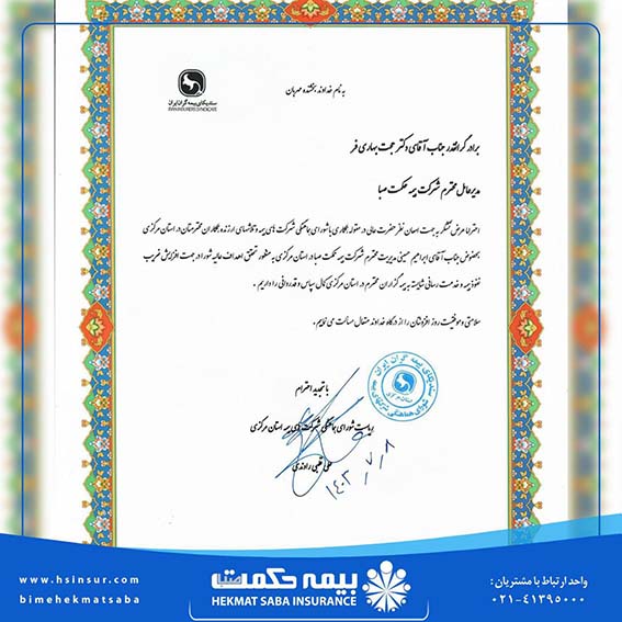 با اهدای لوح سپاس از دکتر بهاری فر مدیرعامل این شرکت به جهت امعان نظر در خصوص همکاری با شورای هماهنگی شرکت های بیمه ، تقدیر و تشکر ک